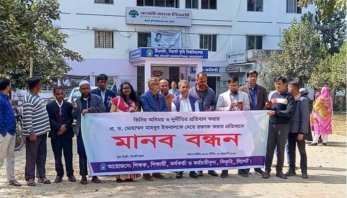 সিকৃবিতে ভিসির অনিয়মের অভিযোগে মানববন্ধন